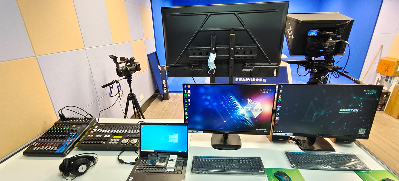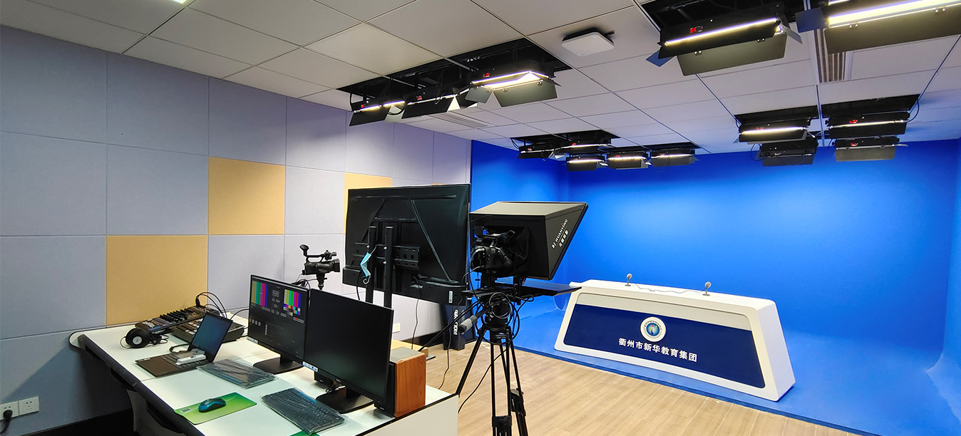 衢州市新华教育集团因地制宜,不同于传统校园电视台演播室和控制室分房间隔开,而是利用一间教室完成节目录制及直播转播、后期剪辑等工作,大大提升了房间的利用率及便利性。此校园电视台主要可以实现以下功能: